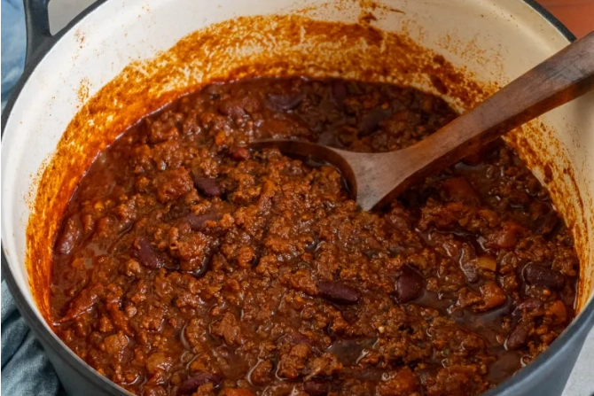 Det sägs att originalreceptet ursprungligen kom till tack vare två Makedonska bröder som immigrerat till USA på 1920-talet. Dom gjorde sin take på Texaschili med kryddor som är väldigt typiska i Balkan. Dom beskrev rätten som en gryta med medelhavskryddor och den gjorde succé!