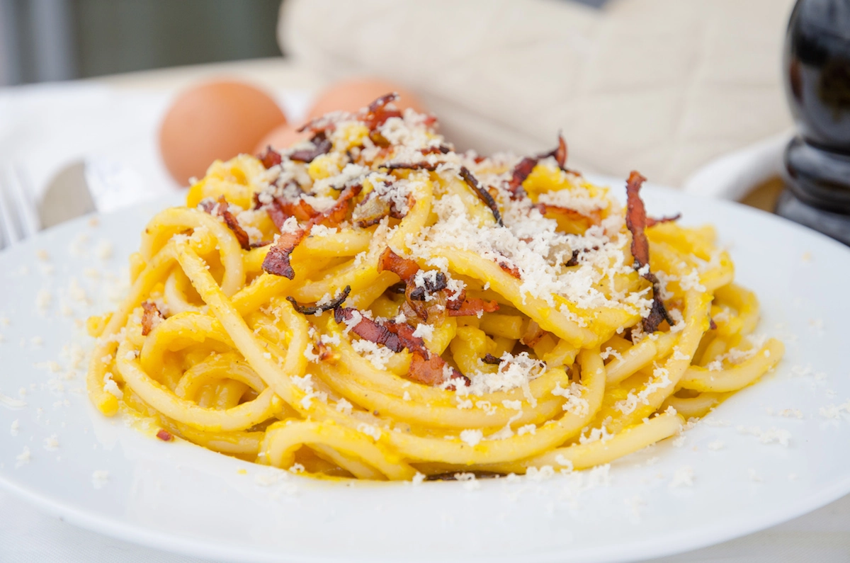 Spaghetti carbonara är en snabblagad italiensk klassiker. En äkta carbonara görs utan grädde och blir krämig tack vare en skvätt pastavatten i såsen. Snåla inte med svartpepparn